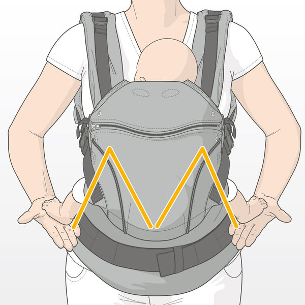 With manduca you can rest assured that your child is always safely cradled in the M-Position. The M-Position is baby's natural seating and carrying position, and is recommended by chiropractors, paediatricians and orthopaedic specialists alike. The seating position of your baby is especially important in the first few months, as the spine and pelvis are not yet fully developed.