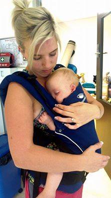 We would warm up and then the last 45 mins of the class she would have it off and was in the Manduca Carrier, the Manduca still held her legs in the correct position for her hips so it was great that we could still carry out Kanga training.